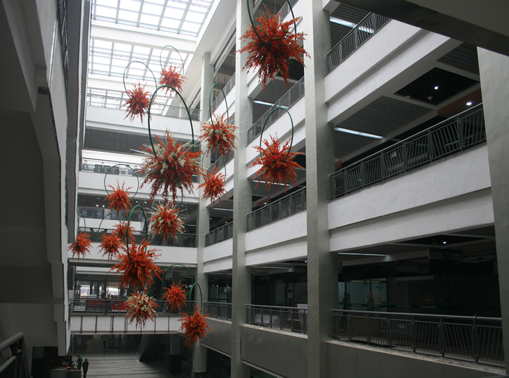 國(guó)際商貿(mào)城五區(qū)市場(chǎng)吸納了國(guó)際大型商業(yè)中心的先進(jìn)理念,配有電子商務(wù)系統(tǒng)、智能安全系統(tǒng)、物流短駁配送系統(tǒng)、金融服務(wù)系統(tǒng),中央空調(diào)、大型電子顯示屏、寬帶網(wǎng)絡(luò)、數(shù)據(jù)中心、環(huán)繞高架車道、大型停車場(chǎng)、雨水回收器、自動(dòng)天窗等配套設(shè)施一應(yīng)俱全,堪稱集購(gòu)物、旅游、休閑為一體的國(guó)際性商務(wù)中心,是國(guó)內(nèi)現(xiàn)代化、國(guó)際化水品最高的全球小商品批發(fā)交易市場(chǎng)。